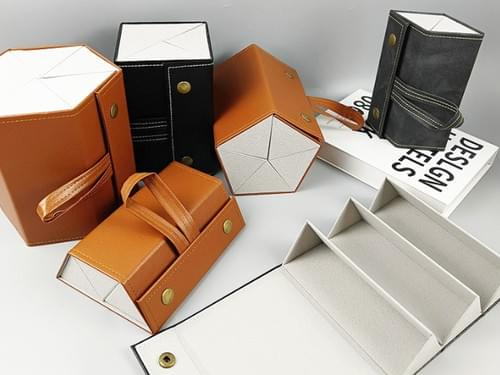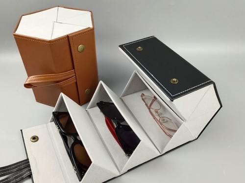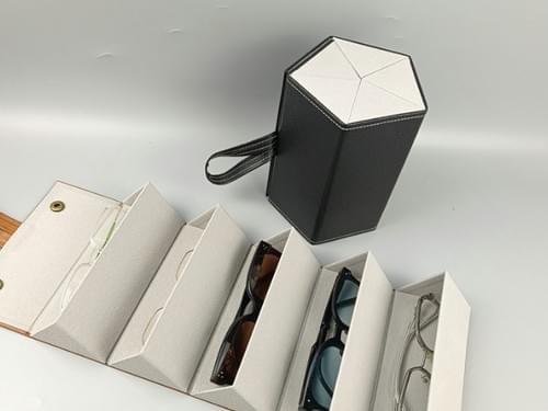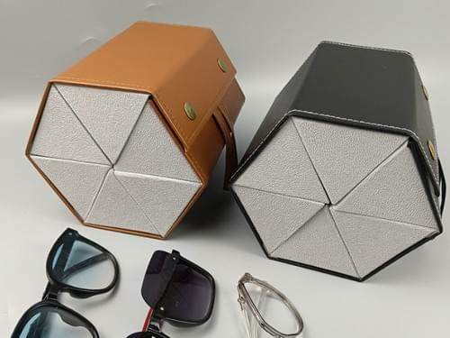 Wholesale Handmade Hexagonal Leather Folding Eyeglasses Case